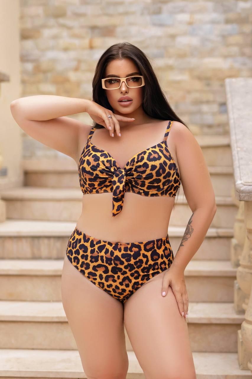 Леопардовий роздільний купальник великих розмірів